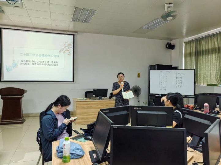 刘霞副书记首先带领党员教师认真学习二十届三中全会的主要精神和重要内容,强调了全会对党和国家发展的深远影响。与会党员们认真学习了全会报告,深入理解了其精神内涵,纷纷表示将坚定不移贯彻落实全会精神,结合自身工作,切实为学院的发展贡献力量。