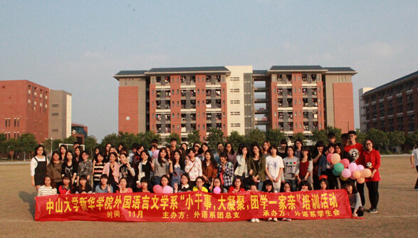 新学期,新血液,新希望。为了增进系团总支和系学生会之间的联系,加深彼此的沟通与交流,外语系团总支、系学生会结合外语系的自身特色,举办了以“小干事,大凝聚,团学一家亲”为主题的团学培训活动。培训于2014年11月16日下午14:30在东莞校区足球场拉开帷幕。