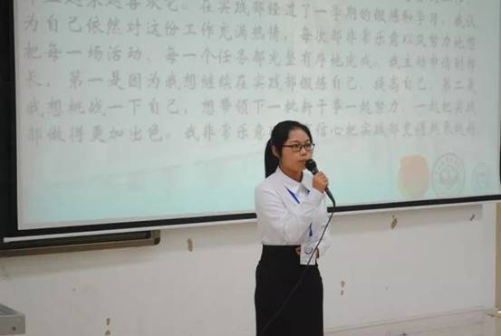 接下来,由团委的委员和学生会竞选学生一次上台演讲。他们自信满满的展现了外院学子的风采,充分表达了自己对学院、对团委、对学生会强烈归属感,自己在外院将气不娇败不馁,全心全意为外院学子服务。