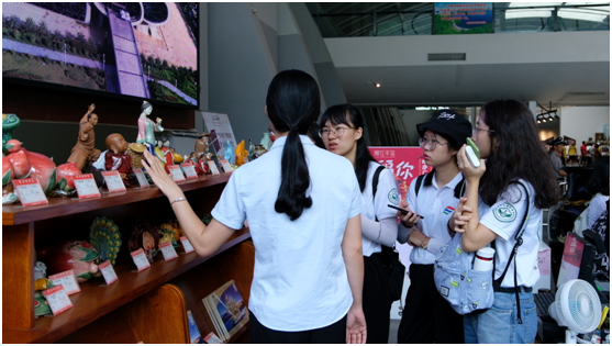 下午三点左右,我们观赏了海丝馆的文化新品,这些新品透露出时代的气息,饱含着浓郁的中国传统文化,这些新品目前是在海丝馆正门左侧,而阳江漆艺的作品就显列于售卖大厅的正门,从这里我们也可以从侧面看出阳江漆器的重要地位。