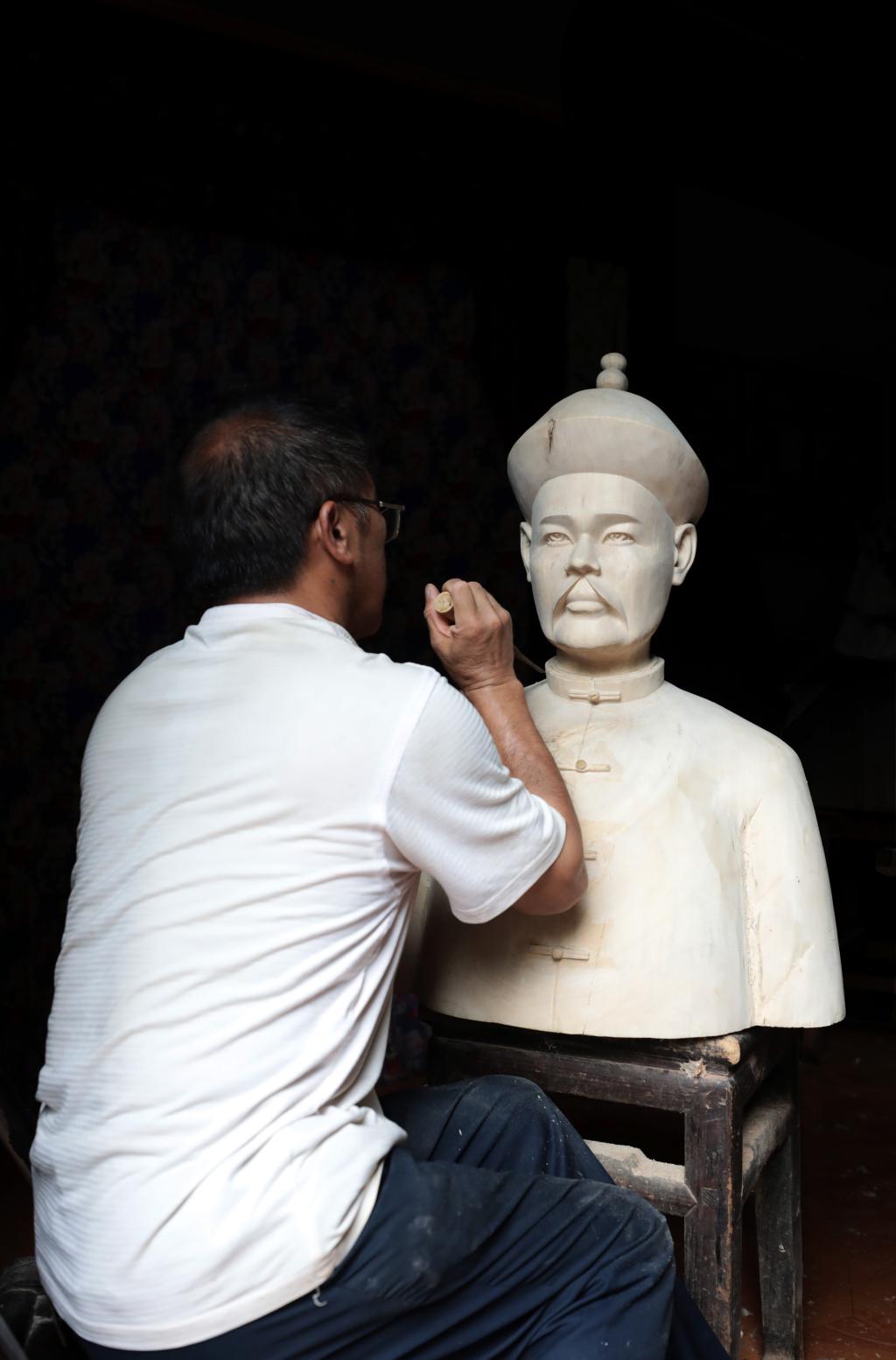 博物馆内陈列苗族银饰样式精美独特,雕刻作坊的手工艺人认真雕刻木雕。
