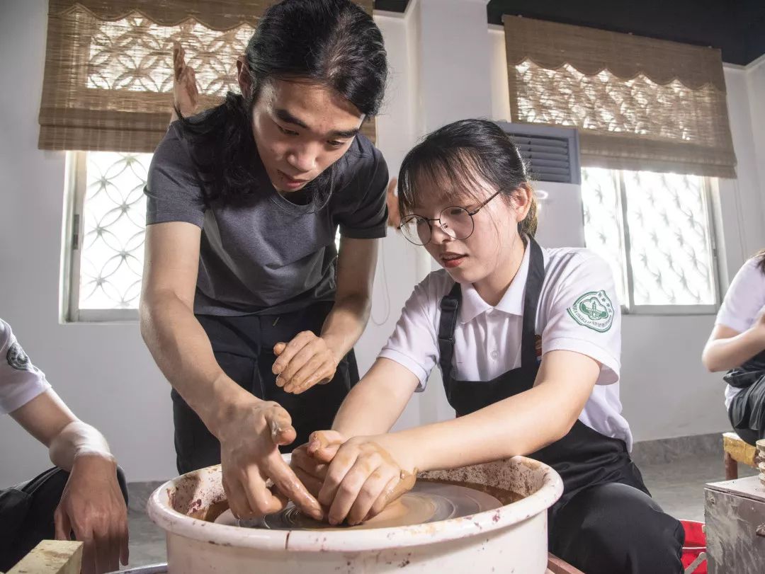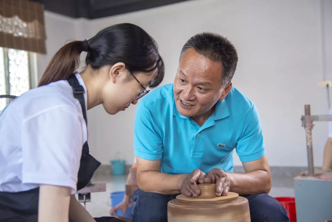 邓嘉莹:在下乡期间,我还很幸运地认识到了教我们制作手拉壶的师傅们,他们真的很真诚朴实,教会了我很多很多。记得在看师傅修坯的时候,我感叹修坯太耗费精力,挺难的,师傅就说他当时学习的时候也是这么想,但困难在面前,如果你不敢于打破它,它就永远都会在这里,阻碍你进步。听师傅一句话,让我自省,也让我敬佩。