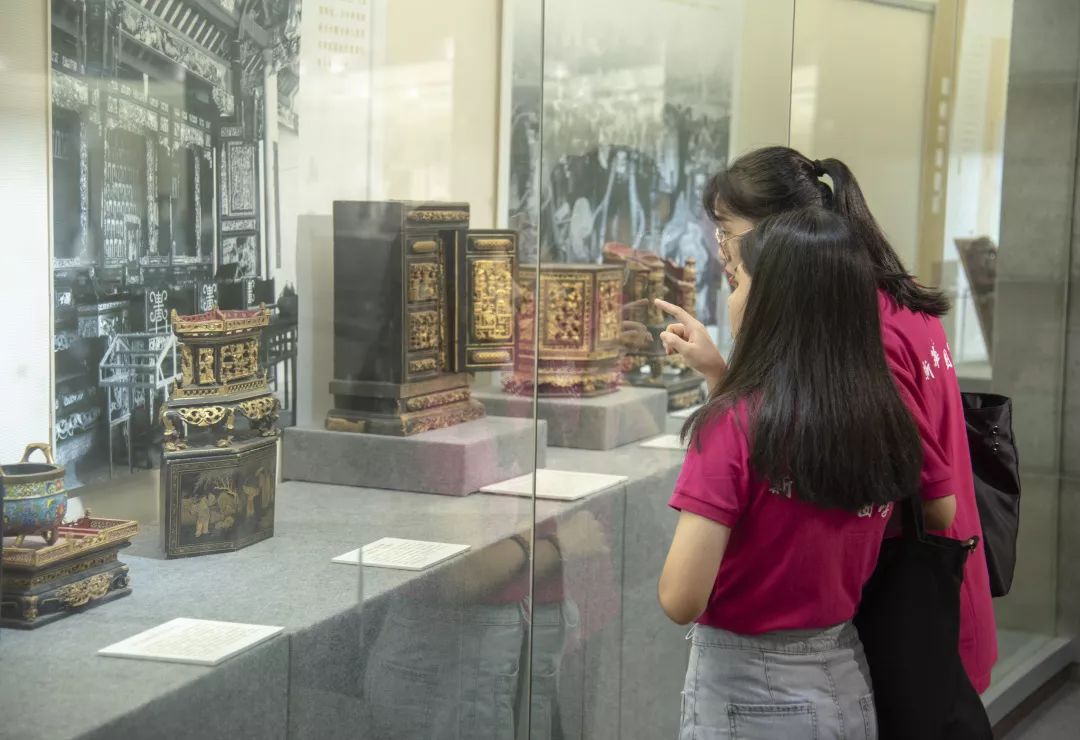 里面精美的木雕、潮绣、陶瓷展品莹莹生辉