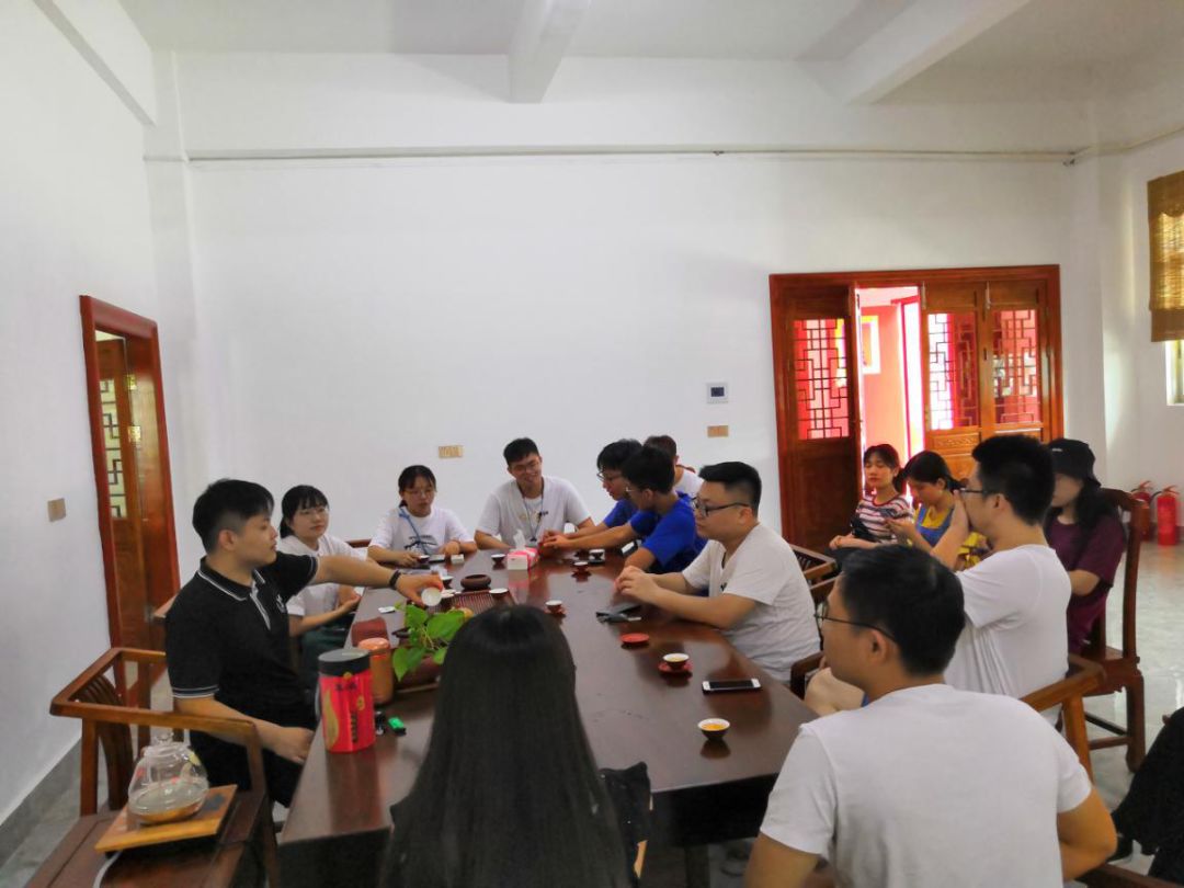 范泽杰:很幸运和裕德堂相遇。等到三下乡结束后回过头来写心得,我发现一个星期的三下乡记忆留给我的只剩下美好。这段记忆犹如一专属列车,前方到站的有:菜脯粥养胃的早餐、前台冰爽的立式空调、八楼令人遐想的月亮、各房间各小组深夜讨论的身影。列车驶入裕德堂,我们能看到扎堆学做壶的小伙伴、会议室里托着下巴思索的写稿小姐姐、扛着三角架四处走动傻笑的摄影小哥哥、为我们冲茶的师兄。茶香飘散,叩三下,礼到,喝茶。
