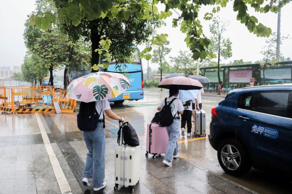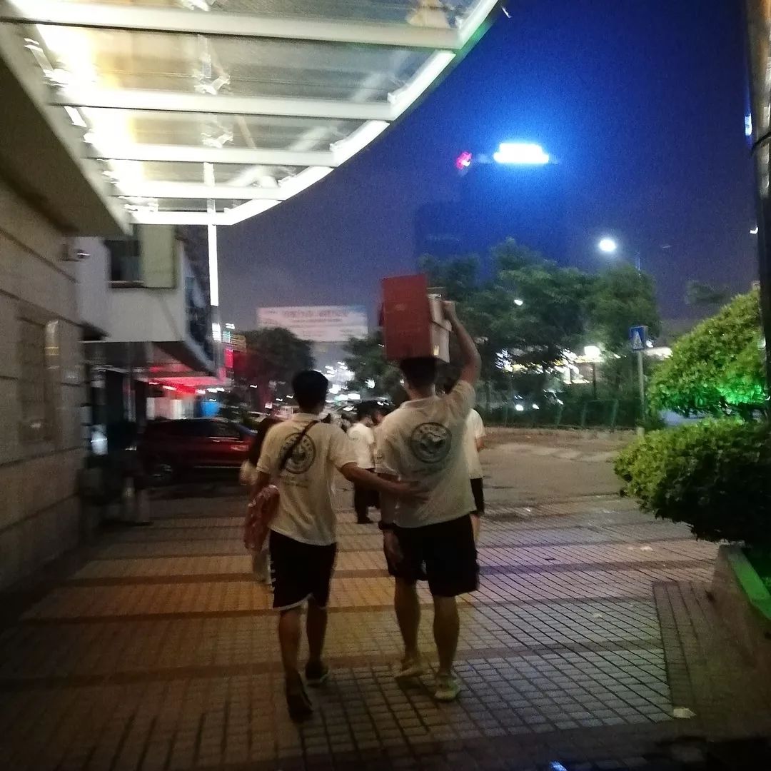 大家忙碌地搬运行李