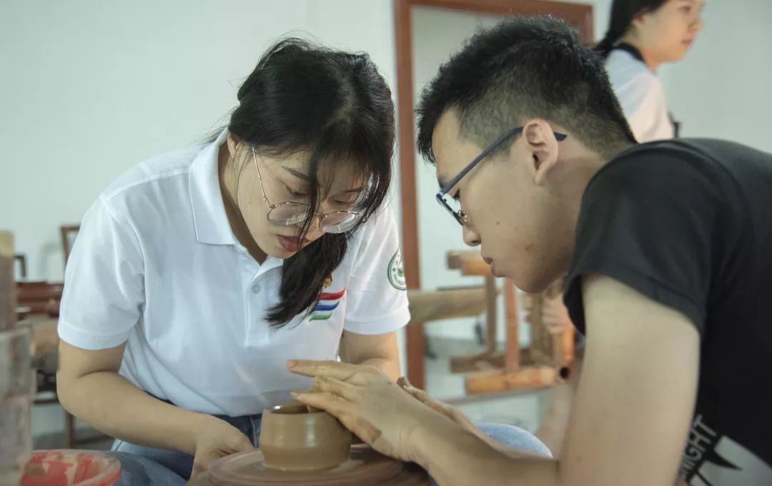一部分队员在体验手拉壶制作