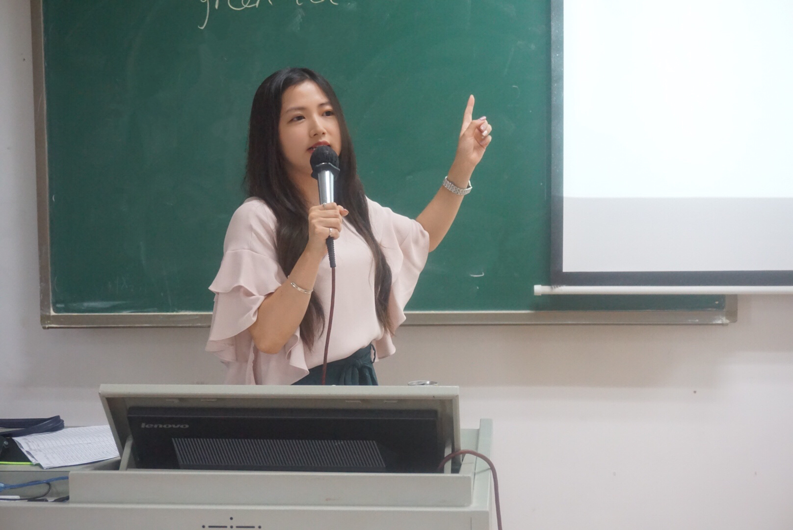 “把课堂化作世界的窗口 用更大的视野追寻真理”。每当杨老师走进教室的时候,总会给同学们一种清新脱俗的感觉。没错,杨老师自信优雅的形象永远是讲台上的一道风景线,难怪第一次上杨老师课的同学都有种耳目一新的感觉。甜美的声线加上纯正的英语发音,结合课程知识生动地讲述与之相关的文化典故,就是这样的一位杨老师,总能在课堂中讲述许多生动有趣的国外见闻,同学们都形容她为一本活版的欧洲地理杂志。因为杨老师,大家深深地爱上了英语,也从不同的角度去体味着一门外语的博大精深。在同学们的眼中,杨老师一直是一个亦师亦友、严肃认真而不失亲切的好老师。