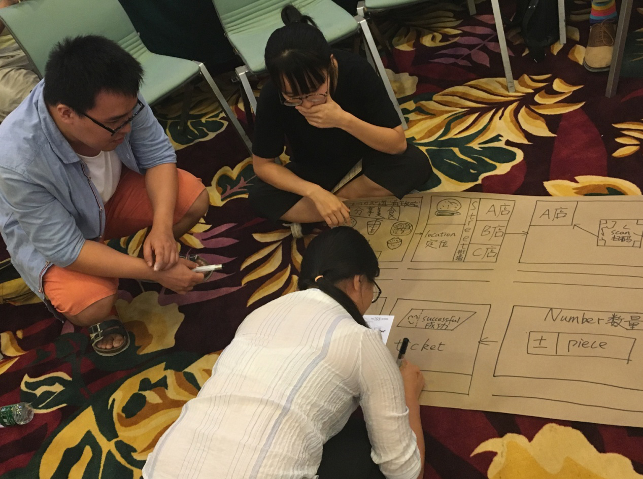 活动具体环节包括:选择感兴趣问题入大组—大组讨论以将问题具体化—大组内分小组—按照Do School导师指导的方法确定小组的解决方案并设计产品—验证产品可行性—大组内充分讨论并选出最佳产品—各大组展示成果。参与讨论的同学们踊跃发言,积极陈述自己的想法,并全程参与了大组作品展示的制作过程。