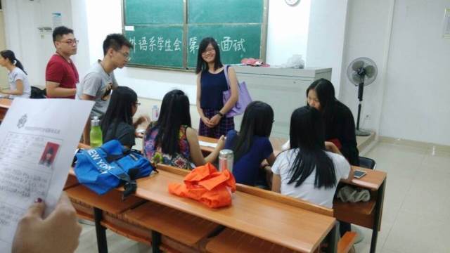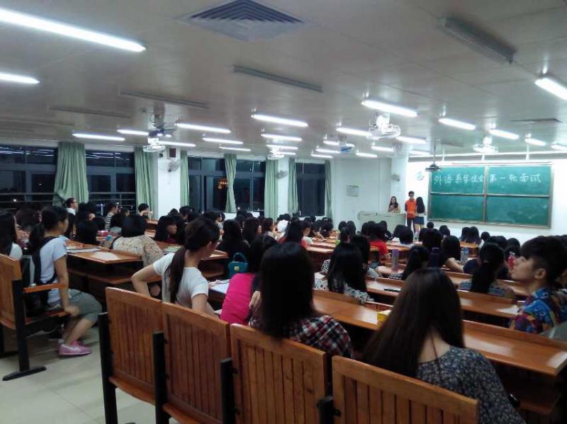 为更好地传承外国语言文学系学生会的宗旨,丰富2014级新生的课余生活和阅历,提高综合素质,外语系学生会于2014年10月13和14日在东莞校区教学楼①D601、602和教学楼①B401、402分别进行了第八届学生会干事第一轮与第二轮面试。
