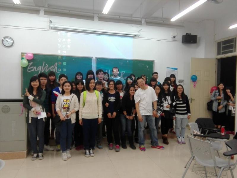 2014年11月20日星期四晚上,由中山大学新华学院百思英语协会主办的小英语角活动如期在东莞校区教2A507举办,学院外教Zach,Maria,Richard都出席了本次小英语角。本次英语角为同学们提供了互相交流的平台和英语沟通环境,并为增进师生交流提供了缓和场合。活动现场座无空席。