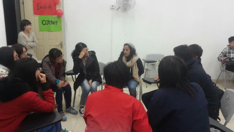 本次英语角以播放一段关于当今职场的英文视频、面试情景模拟、职场描述、Free Talk和请外教谈论关于当今国外就业现状,及其在求职面试中的相关经验等为环节。其中最精彩的就是面试情景模拟了,同学们面对面试官犀利的问话,紧张而不乱,都一一作答。Free Talk环节,外教在谈论当前的就业形势的同时,还给我们分享了他们的亲身经历,很辛苦但是很值得,因为这就是他们的成长,这就是人生。他们说我们一定要自信,相信自己,信赖自己,世界很美,等着我们去发现的还有太多太多。此次英语角英语角活动始终以“Culture”,“Communication”,“Creativity”为宗旨,全场的职场文化、职场交流以及职场上的活力越发浓厚。