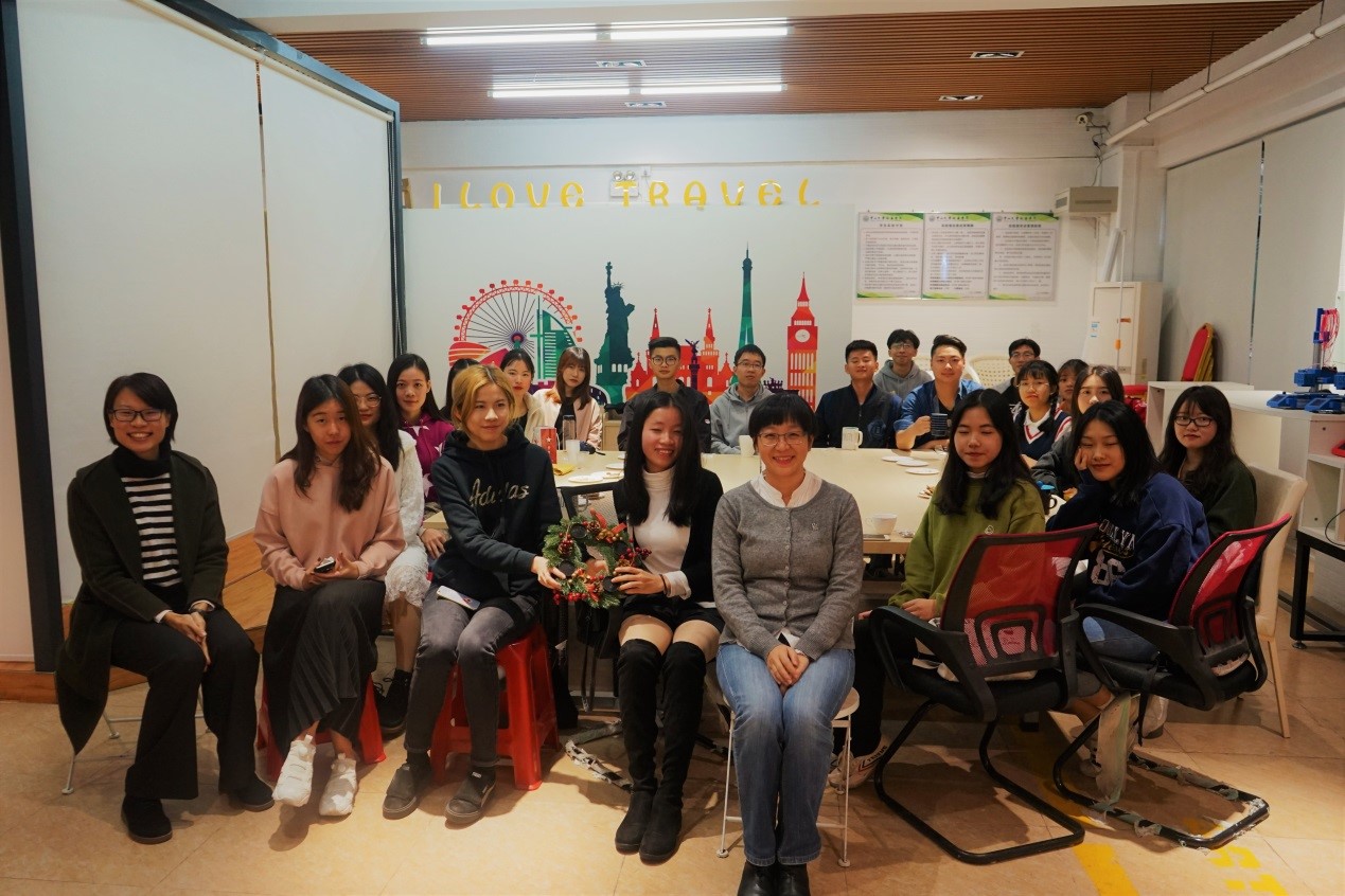为展现语言魅力,体验异域文化,2018年12月19日下午,122cc太阳集成游戏推出的外国语言文化节系列活动之德国热红酒品尝体验课在我校东莞校区定静楼②-C区一楼咖啡店举办。本次体验课由留德归国教师洪茹担任主讲人,122cc太阳集成游戏2016英语及商务英语专业共15名学生参加了此活动。