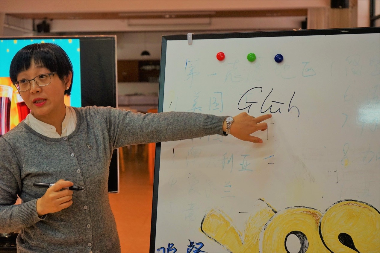 紧接着,洪茹老师向在座师生介绍了德国热红酒的来源。洪茹老师提到,德国喜用马克杯喝热红酒,因为马克杯比玻璃杯耐热,不易破裂,客人喜欢收集这些写着年份和地点的马克杯,也可以把它带回家。
