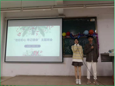 蔡志坚、张雪婷两位同学担任本次班会的主持
