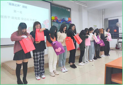接近尾声是“最美之声”的颁奖环节,这一项目是黄珍老师布置的课外项目任务,主要内容是朗读Three Days to See 中的经典段落,并录制一段视频,由同学们自愿参加,自由组队。本次项目共收到24组作品,其中10组作品经过大众投票,获得最佳作品荣誉。