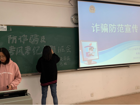 2019年12月31日,在辅导员李水清老师的组织指导下,我们在定静楼2B202顺利召开了“防诈骗安全教育及考风考纪班会”。