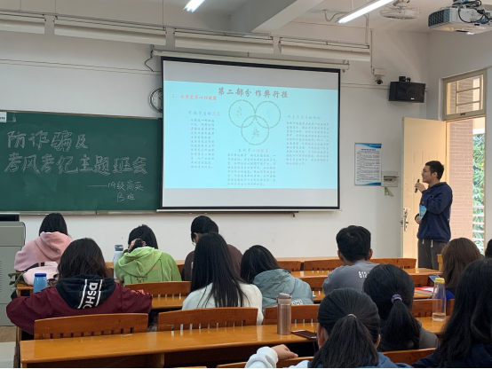 临近期末,大一新生即将迎来大学里的第一次考试,为让同学们知道考风考纪的重要性,加强同学们考试的纪律观念, 19商英B班特召开本次主题班会。