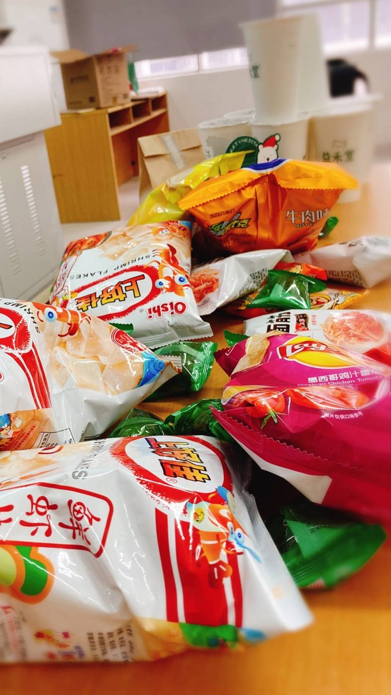 20级广州卓越班的班长和学委为此次班级活动准备了零食、奶茶,以及祝福书签。