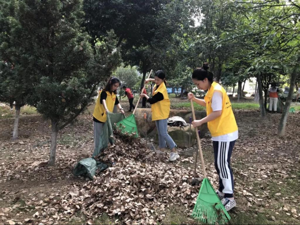 校道旁、草丛中遍布着志愿者和老师认真打扫的勤劳身影,他们挥动着手中的工具,不放过任何一处枯叶。树上,鸟儿的鸣叫声仿佛在夸赞着他们。