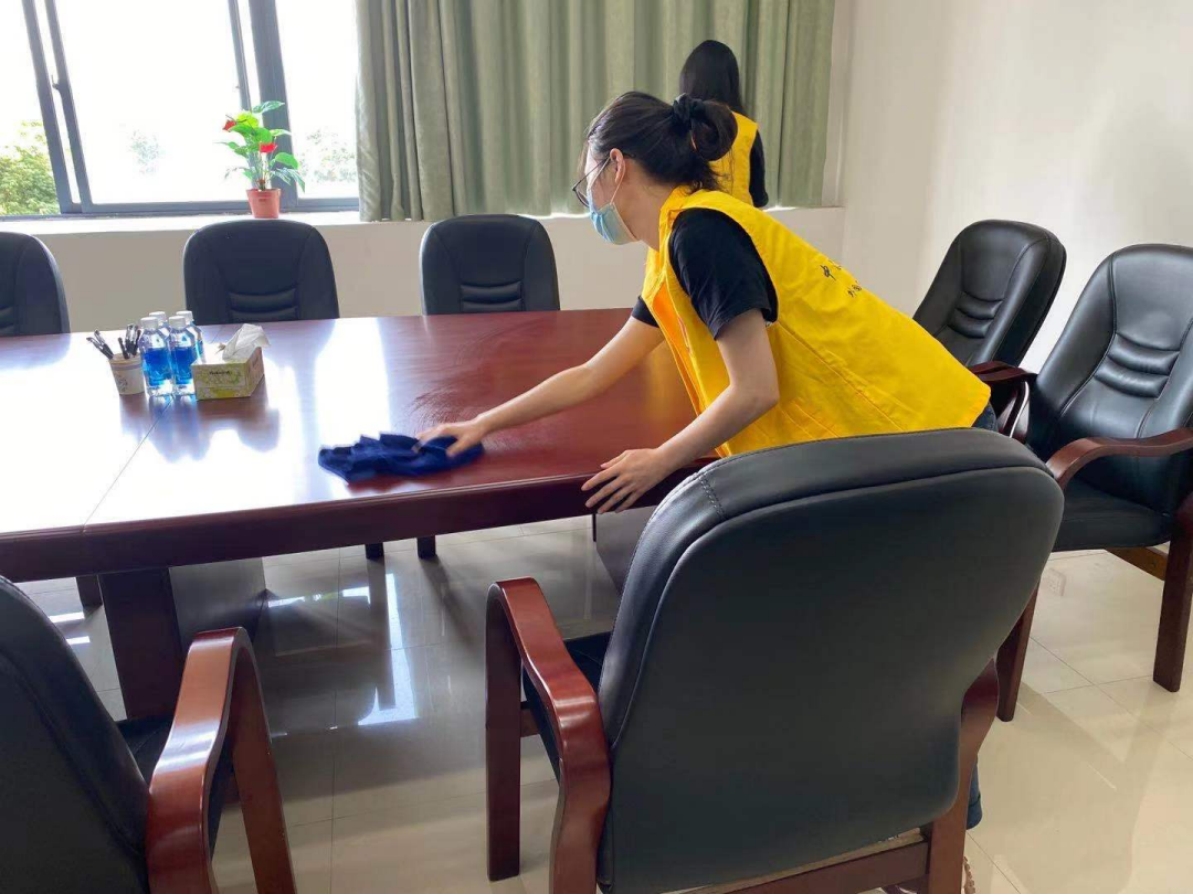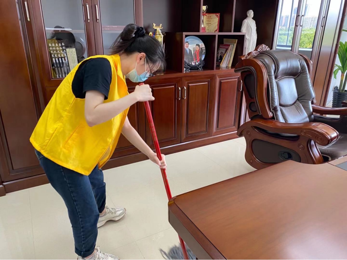 清晨,鸟儿在婉转歌唱,志愿者们来到了清扫地点——教学楼办公室。他们分头行动、配合默契,将办公室清扫得干干净净。一丝不苟的工作态度给老师们提供更好的办公环境。