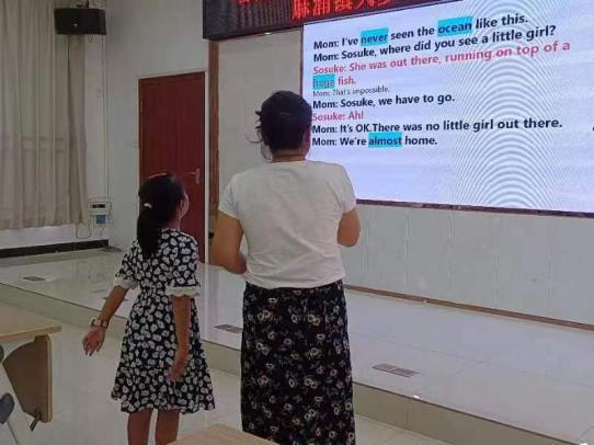 活动进入尾声,巡课志愿者与授课志愿者相互配合,共同营造出良好的外语学习环境。课前,授课志愿者认真设计教学内容,制作充满有趣的动画台词的PPT。课上,他们介绍基本的故事内容,吸引着孩子们的兴趣;并且标记重点单词,加深孩子们的印象;通过趣味小游戏,让孩子们更容易地记住知识。课后,志愿者为孩子们布置了配音作业,以巩固课堂知识。