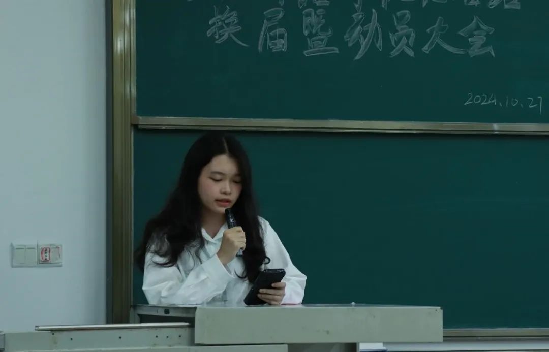其次,由22级站长吴雅婷及各部门部长发表讲话。他们的发言不仅回顾了过去一年的工作,也对新一届的成员提出了鼓励。
