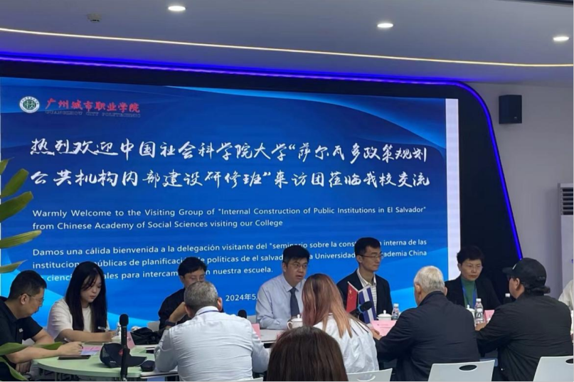 罗韩鑫在会议上为校方进行翻译(左二)