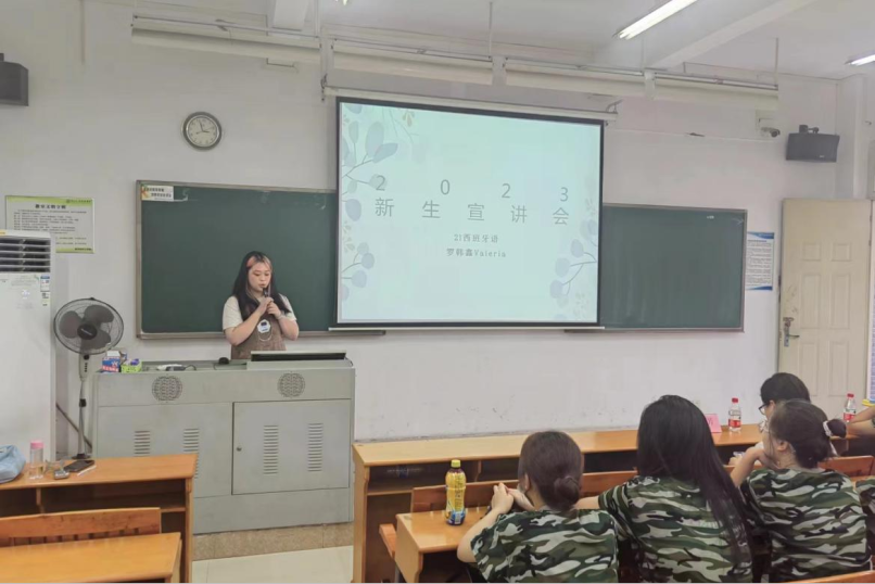 罗韩鑫作为优秀学生代表在2023届新生入学时进行宣讲