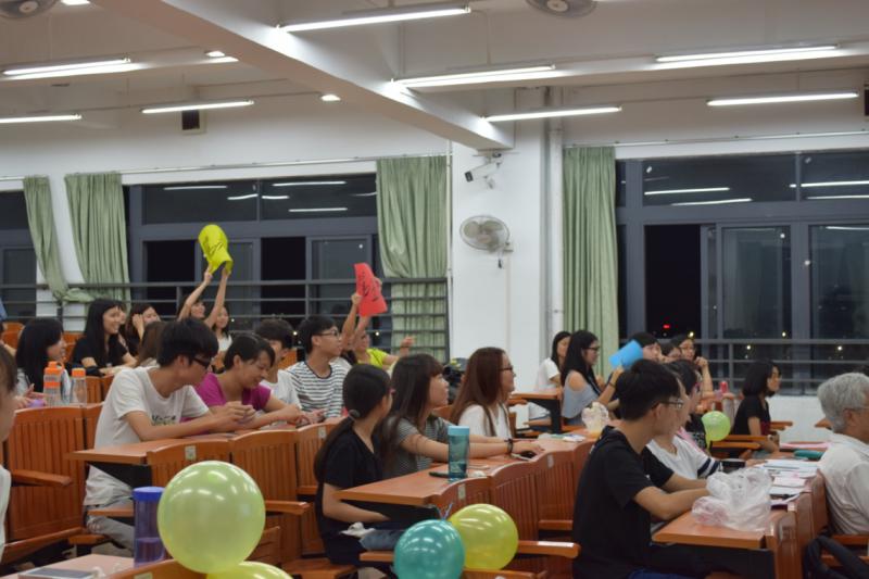 在来自乐林音乐协会的苏家敏同学为我们带来一首动人的歌曲《Whataya want from me》之后,比赛正式开始。首先是问答环节,在必答题部分,六支参赛队伍由于紧张在第一环节并无发挥极致,但在第二部分抢答题中,选手们都争先恐后地争夺抢答机会,现场气氛火爆。