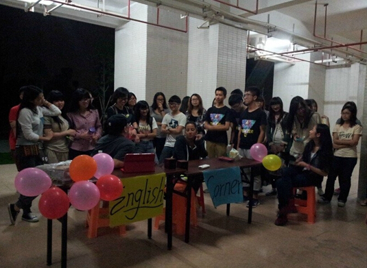 随着春天的到来,各处的花竞相开放,树木也长出嫩绿的牙儿,同学们也都陆续进行了春游的活动。这次活动旨在给同学们提供一个互相交流、沟通与分享乐趣的平台,提高同学们的口语能力。2014年4月16日(星期三)晚上7点,由中山大学新华学院百思英语协会主办的以“Spring outing”为主题的英语角活动在我院东莞校区6栋宿舍架空层如期举行。本次英语角出席嘉宾有:外教Maria、Rich。