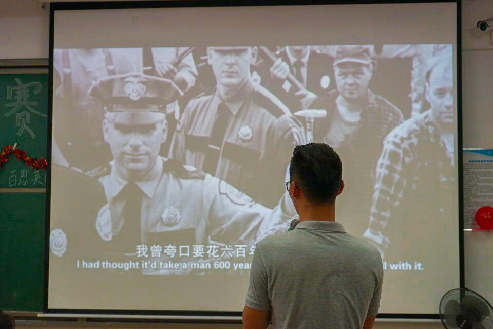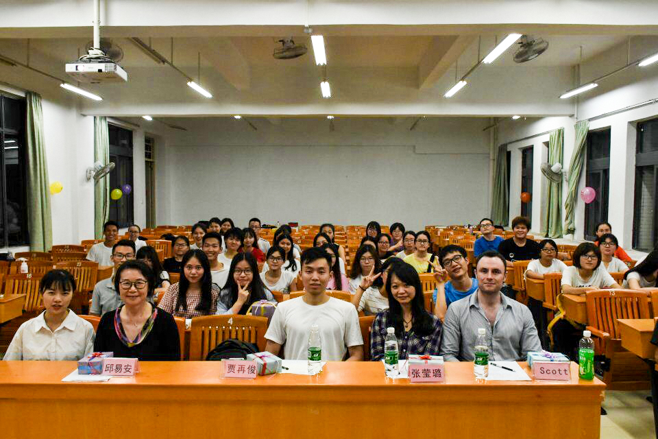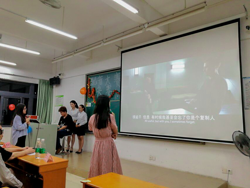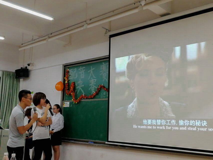 2018年5月17日星期四晚上7:00至9:30,百思英语协会于我校东莞校区定静楼二D201成功举办欧美电影配音大赛决赛。我院邱易安教授,scott老师,贾再俊老师,张莹璐老师出席本次比赛并担任评委老师,部分外院学子到场观摩。