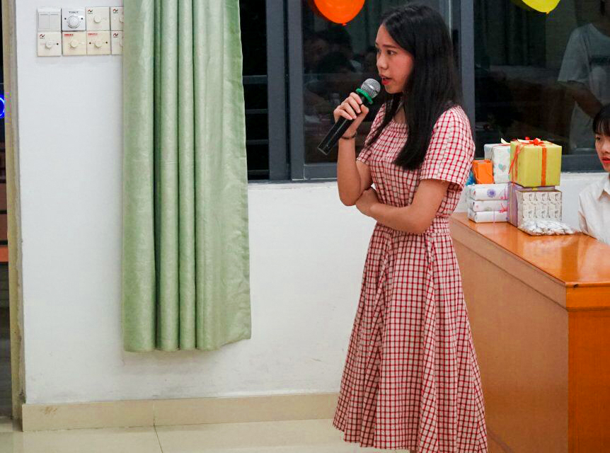 邱易安教授为本次配音大赛的第一名选手邓舒仪同学颁奖
