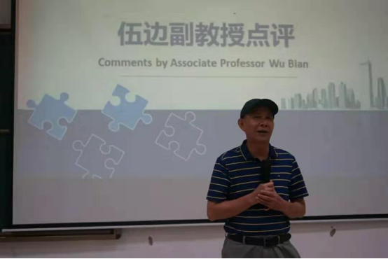 伍边副教授(右)与最佳指导老师蔡驰、廖永鹏、蔡桂琪、金朴合影留念
