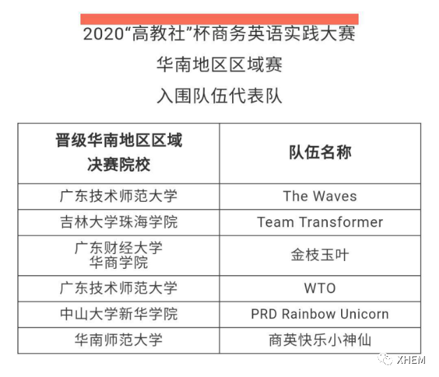 2020年“高教社”杯全国商务英语实践大赛华南地区区域初赛截止2020年10月16日,来自华南地区的18支符合参赛资格的队伍提交了参赛资料。根据大赛章程,评审专家认真细致地审阅了各个学校代表队提交的演示视频、PPT文稿和项目概述,并且严格参照大赛的评分标准进行了独立打分评选。而其中由122cc太阳集成游戏老师廖永鹏老师,蔡驰老师,洪茹老师带领的PRD Rainbow Unicorn队伍成功入围华南区赛决赛,PRD RainbowUnicorn的成员有陈健宇、陈惠萍、吴小敏、沈嘉宝、古冬燕、余灏玥。决赛拟定于2020年11月14日举行,届时PRDRainbow Unicorn将与华南赛区其他五支队伍进行最后的比拼。