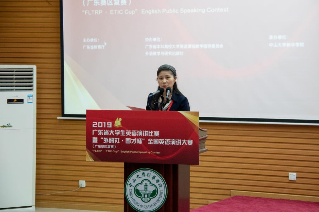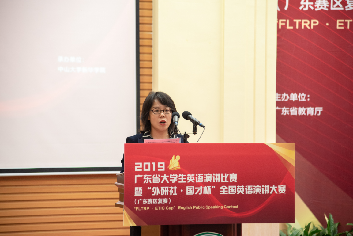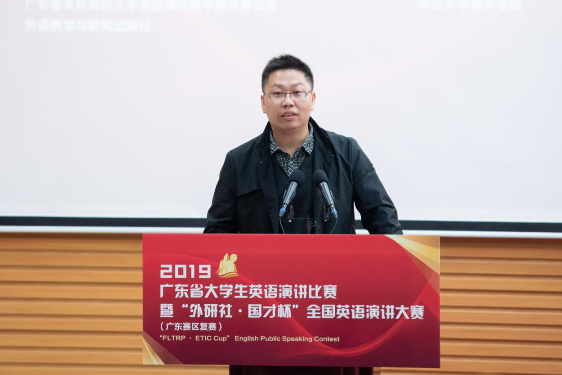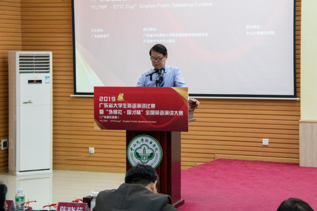广东省教育厅高教处李成军科长感谢中山大学新华学院作为比赛承办方的精心筹备,为参赛选手提供优质的服务和良好的比赛环境。广东省大学生英语演讲比赛是广东省大学生教学英语方面不可多得的赛事,代表了广东省大学生英语演讲的最高水平,对英语教学的指导改革有着极大的作用;“外研社·国才杯”全国英语演讲大赛是全国参赛人数最多、规模最大、水平最高的英语演讲赛事。他希望所有参赛选手借助这个舞台锤炼专业本领、锻炼实践能力,也希望英语专业人才培养能够依托比赛,强本领,长才干,涌现出更多自信发声的优秀英语人才。