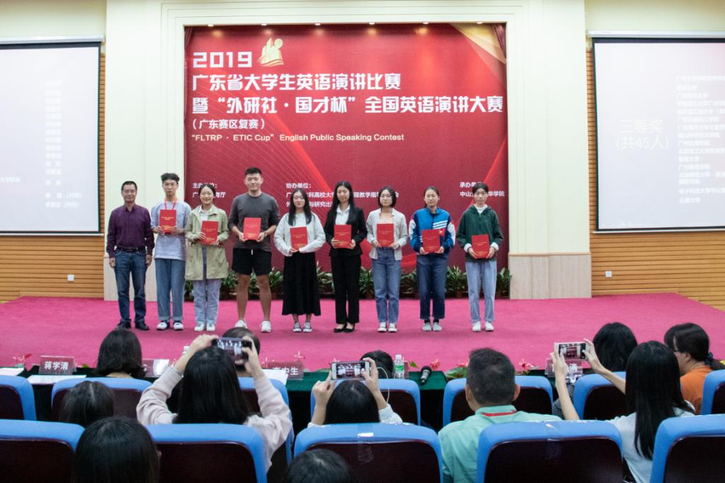 11月9日至10日,2019年广东省大学生英语演讲比赛暨“外研社·国才杯”全国英语演讲大赛(广东赛区)半决赛及决赛在中山大学新华学院成功举办。经过校园初赛,最终来自全省63所高校的140名选手汇聚一堂,同台竞技,参赛规模再创历史新高。省内各高校知名外语专家担任此次大赛评委。