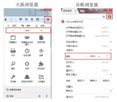1)调整浏览器显示比例: