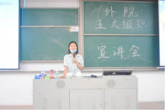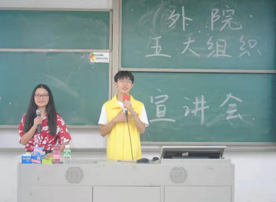 紧接着,外院团委、学生会、记者站、百思英语协会、向日葵志愿服务队的代表分别向新生们详细介绍各自组织内部架构、部门职能,以视频等形式向新生们展示了过往的活动成果并分享了自己在组织工作中的收获,新生们都对此表现出极大的兴趣。