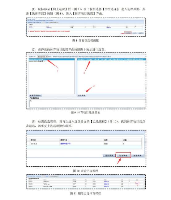 1. 大学英语课程与体育课程为公共必修课程,学生在学期间需完成课程的修读并获得相应学分,否则将无法顺利获得毕业资格。2. 未按规定完成选课者,将由开课单位进行随机配课。3. 选课结果以教务管理系统的记录为准,选课结束后私自到任课教师处进行改选的,其课程成绩不予认定,并按0分记载。4. 请尽量使用电脑访问内网网址进行选课。如使用手机、Pad等移动设备进行选课,可能会出现无法提交或选课失败等情况。5. 选课高峰期可能会出现网络繁忙或阻塞,请耐心尝试。6. 体育课选课成功后,学生需根据所选的体育项目提前准备好上课所需的装备、器材等。