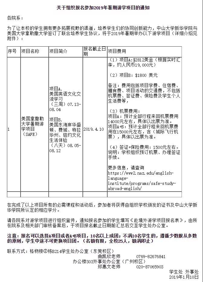 http://www.xhsysu.edu.cn/uploadfile/2019/0110/20190110023551525.xlsx,还可以了解到拿撒勒大学暑期游学三周活动日程哦~