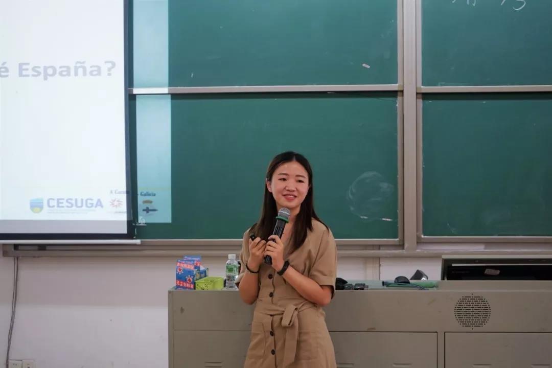 随后,李玉婷老师以图片浏览的形式带领在座师生领略了圣豪尔赫大学的风采。圣豪尔赫大学有两个校区,校区分别位于昆卡和拉科鲁尼亚,都是非常优美的城市。领略完校园风光,李玉婷老师对西班牙语专业课程、专业实习、专业领域、住宿、项目学习计划、游学费用等展开了介绍。据她介绍,在TSE 体验中,学生不仅可以根据自己的兴趣学习专业领域的内容,而且还可以和当地的居民深度交流,一起参与体验特色活动,交流经验。