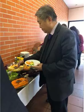 随后,为进一步了解在校学生生活情况,校办国际合作项目顾问Niall Power先生邀请我校代表团前往阿威罗大学学生食堂,体验具有葡萄牙传统风味午餐,同时介绍了学校基本餐食情况。
