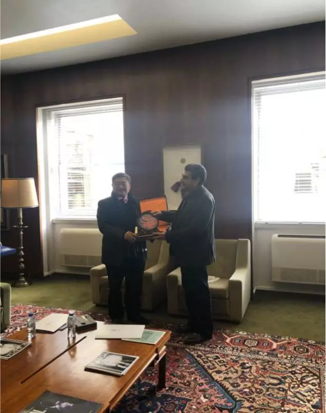 会谈结束后,双方互赠纪念品 (左起:我校校长王庭槐、里斯本大学副校长Luis Manuel dos Anjos Ferreira)