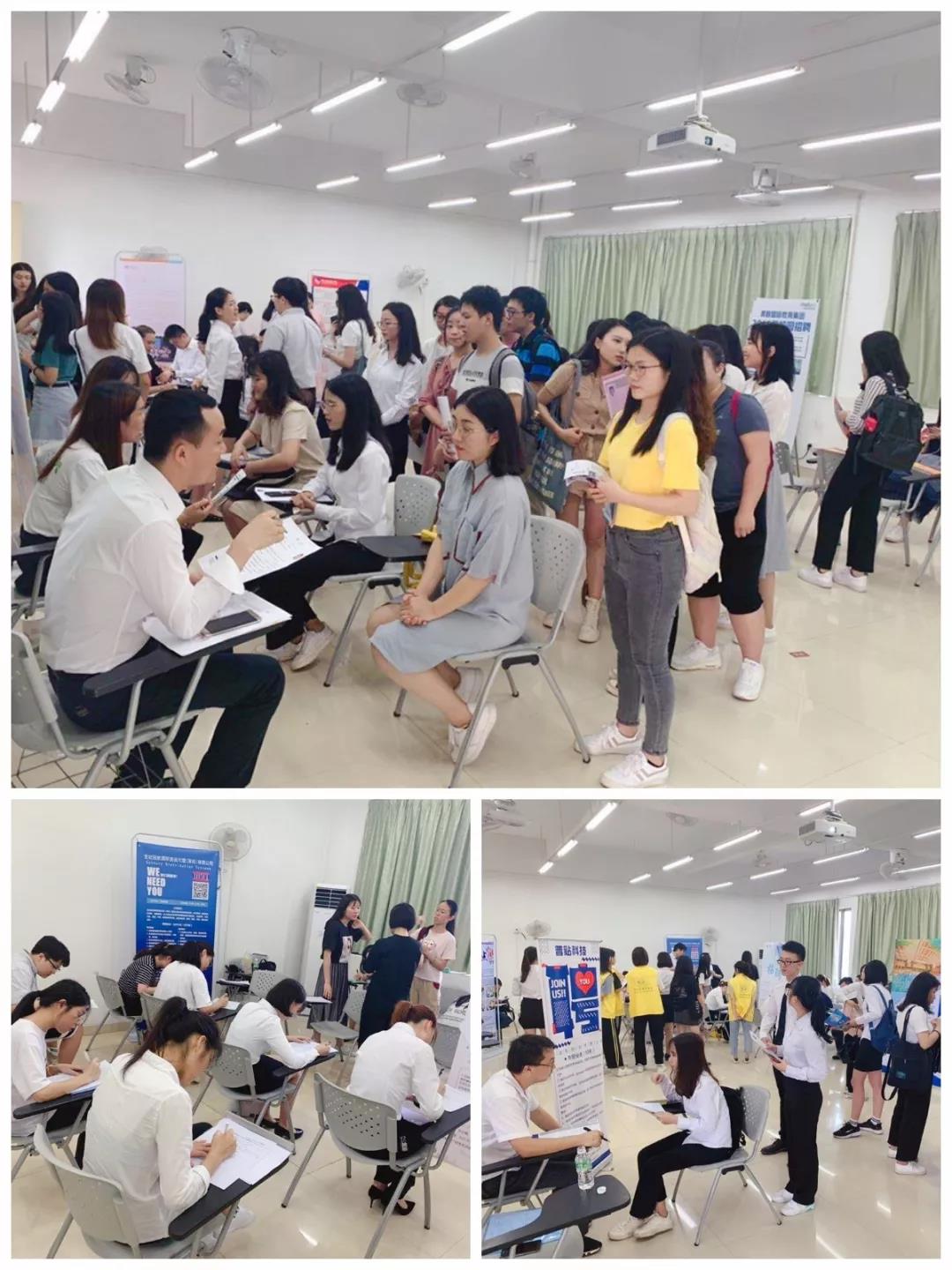 为提升我院学子的就业质量,加强校企合作,2019年5月15日下午,122cc太阳集成游戏第二届人才招聘会于我校东莞校区定静楼②-A505、A506、A507三个教室同时举行。东莞市翻译服务中心、学易优教育集团、世纪冠航国际货运代理(深圳)有限公司、深圳市普实科技有限公司等14家企业单位齐聚中山大学新华学院122cc太阳集成游戏,为外院学子提供就业岗位。122cc太阳集成游戏执行院长廖益清、副院长李向奇、副院长邱易安、党总支副书记欧衍伽、院长助理李文蓓、实践部主任陈绮雯、教师代表洪茹莅临现场指导,与校内前来应聘的所有外院学子共同参加了此次人才招聘会。