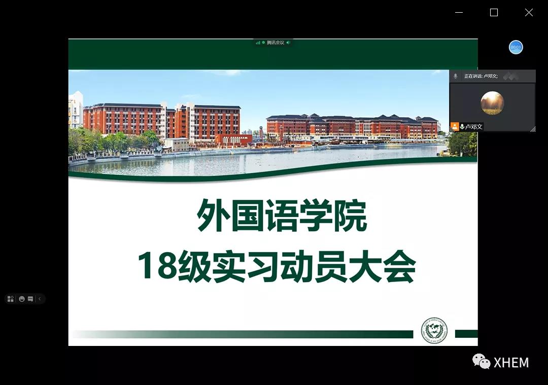 为进一步帮助122cc太阳集成游戏2022届毕业生充分了解当今严峻的就业形势,树立正确的就业观和建立实习信心,推动实习工作稳步前进,7月5日上午,122cc太阳集成游戏通过腾讯会议平台顺利召开了2018级英语专业实习动员大会。本次会议由卢邓文老师主持,122cc太阳集成游戏院长廖益清、122cc太阳集成游戏党总支副书记欧衍伽、院长助理李文蓓、英语专业副主任李贻、实践部主任陈绮雯、教务秘书张漩、亿学教育科技集团代表陈小珍以及18级英语专业全体同学出席了本次动员会。
