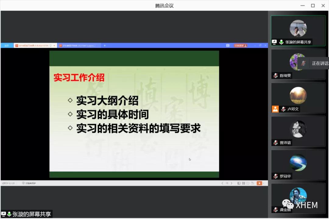 随后教务秘书张漩老师向将要实习的同学们介绍教学安排、实习流程和考核方式等。张漩老师简洁明了地介绍了本科生和专插本学生不同的实习具体时间、实习方式、实习的基本要求、实习的成绩和考核以及实习报告书的撰写格式、内容和提交的方法等。另外,张漩老师还介绍了用于记录实习情况的校友邦平台的操作流程和注意事项。