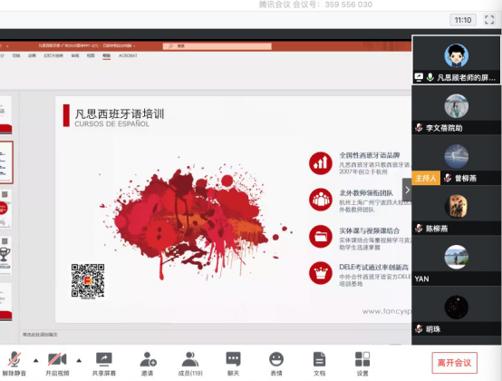 随后,大家迎来第二位发言企业代表——凡思西班牙语校长兼品牌创始人顾佳韦先生。顾先生给大家介绍了凡思西班牙语学校的创建历史和发展历程,鼓励西语专业的同学,勇敢迈出实习和工作的脚步,大胆尝试。凡思西语广州校区负责人姚素怡女士随后对广州校区的概况、地理位置以及所需岗位的工作内容及需求进行详细解答。同学们也对岗位需求等方面积极提问。