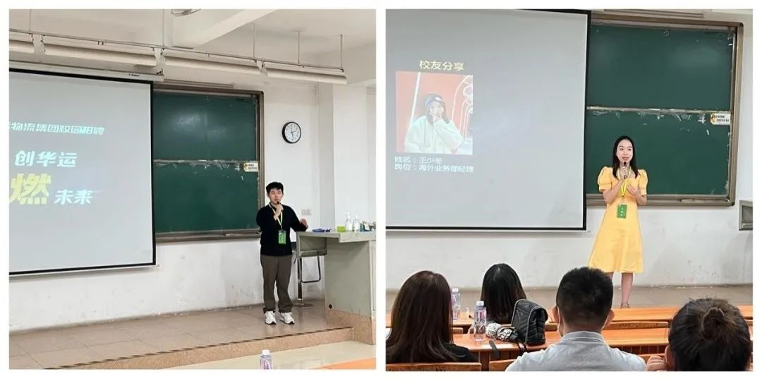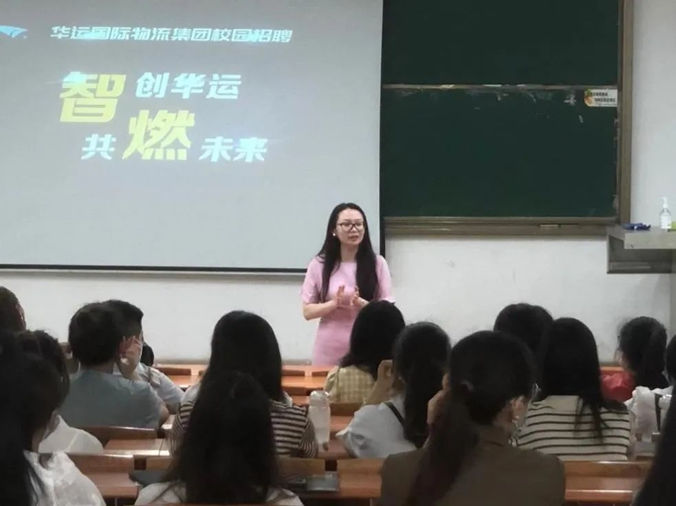 宣讲会伊始,华运国际校招专员廖德智先生向各位同学从企业文化、经营业务、职业发展等方向做了详细介绍,让同学们对华运国际有充分的了解和认识。随后,华运国际海外业务部经理、我校优秀校友王少冬热情地向在场的师弟师妹分享了自己在华运国际的职业成长经历,让同学们倍感亲切和温暖。