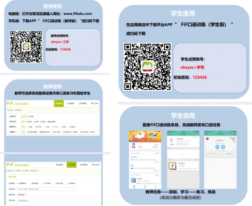 图为FIF口语训练app的教师使用方法(左图)和学生的使用方法(右图)