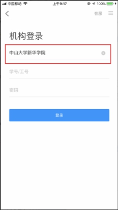 3.跳转到机构登录页面中,学校单位填写并选择“中山大学新华学院”。